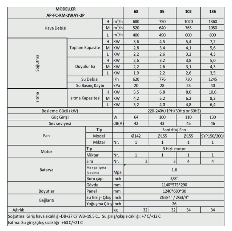 Gövde: Galvaniz sacdan mamül, havanın üniform akışı için şekillendirilmiş (pre-formed) yapıdadır. Ayrıca, ısıl ve ses izolasyonu için yeterli kalınlıktadır. Yüksek Verimli Batarya: Bakır borular ve çevresinde mavi alüminyum kanatçıklardan mamül... 30mbar (3Mpa) basınç altında sızıntıya karşı %100 test edilmiştir. Panel: Estetik tasarım, ABS den mamül, sentetik yıkanabilir ve çıkarılabilir hava hava fi ltresi, otomatik kanat ayarlı Drenaj Tavası: Yüksek yoğunluğu genleşmiş polistrenden enjeksiyon metoduyla imal edilmiştir. Dış yüzey komple polistren izolasyonludur. Drenaj Pompası ve Akış Anahtarı: Cihazda checkvalf içeren bir drenaj pompası ve kaçakları önlemek için bir akış switchi vardır. Su belli bir seviyeye ulaşırsa akış switch’i alarm verir, su akışı veya fan motoru durdurulur. Taze Hava Girişi: Standart olarak mevcuttur. Grill (Izgara): El Yaralanmalarına Önlem Amacıyla Opsiyonel Parmak Izgarası